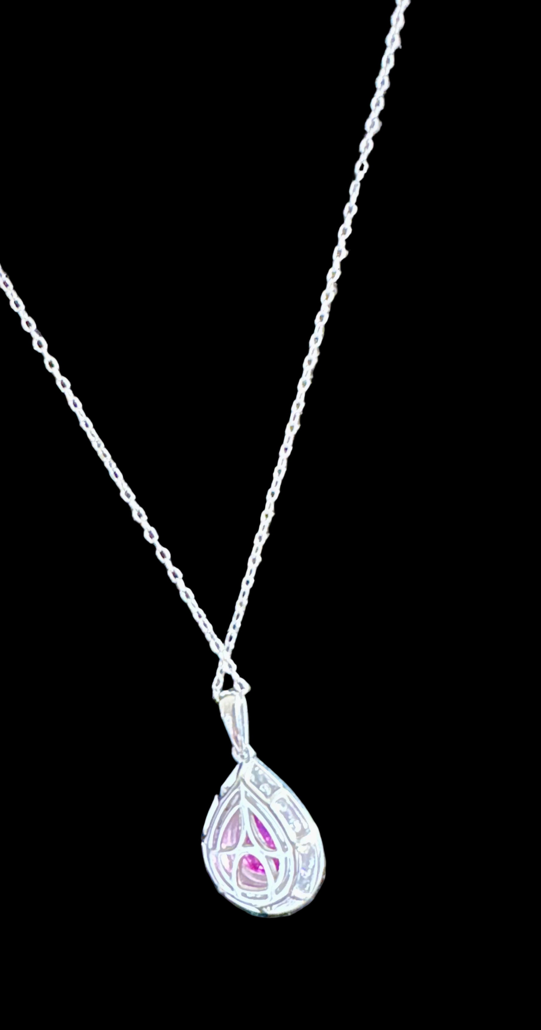 Gorgeous Pear cut Pink Sapphire & Diamond Necklace