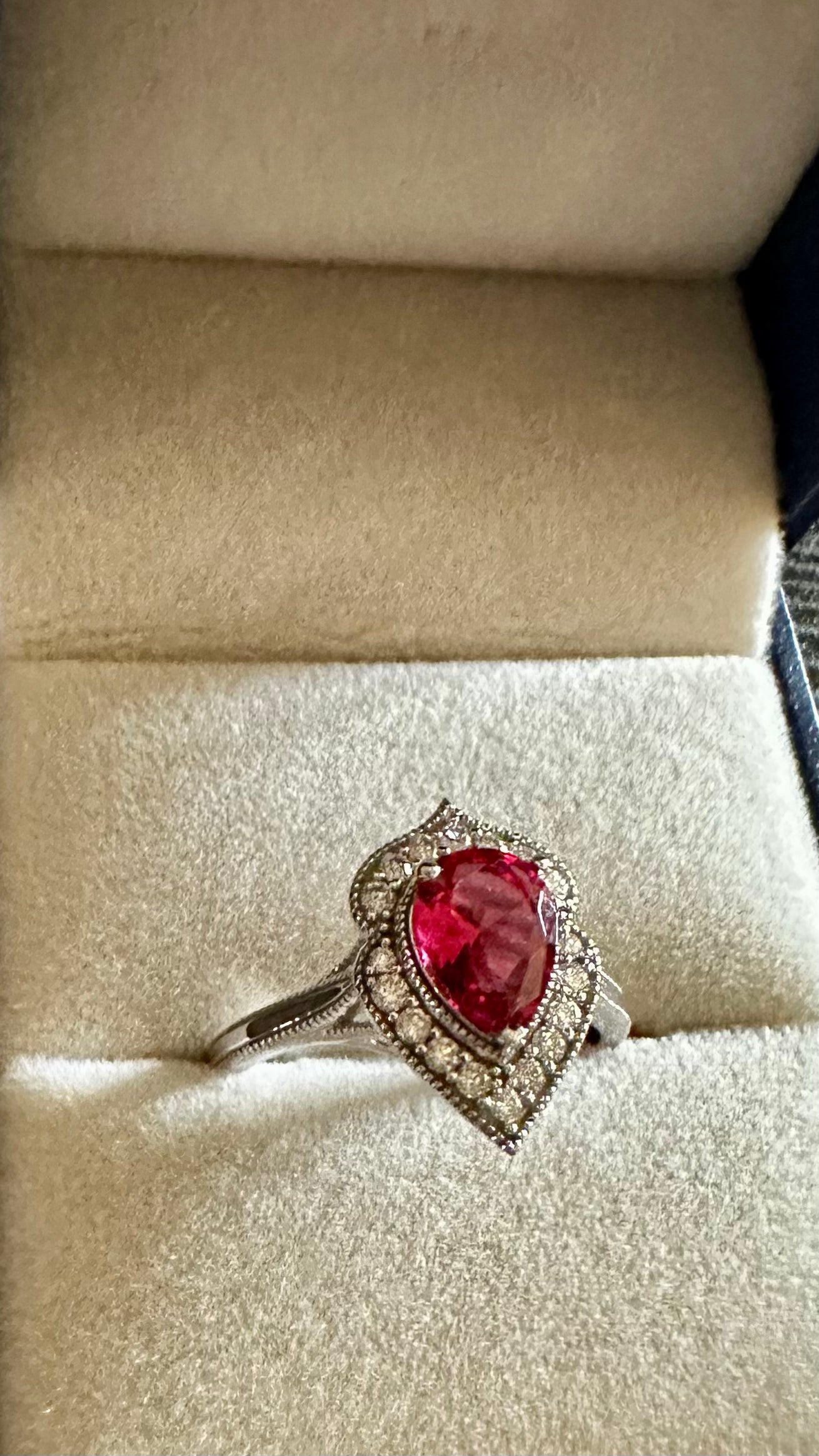 Laboratory grown gemstone 1.0 carat with .25 carats of laboratory grown diamonds color grade G clarity grade VS2 SS size 7.5