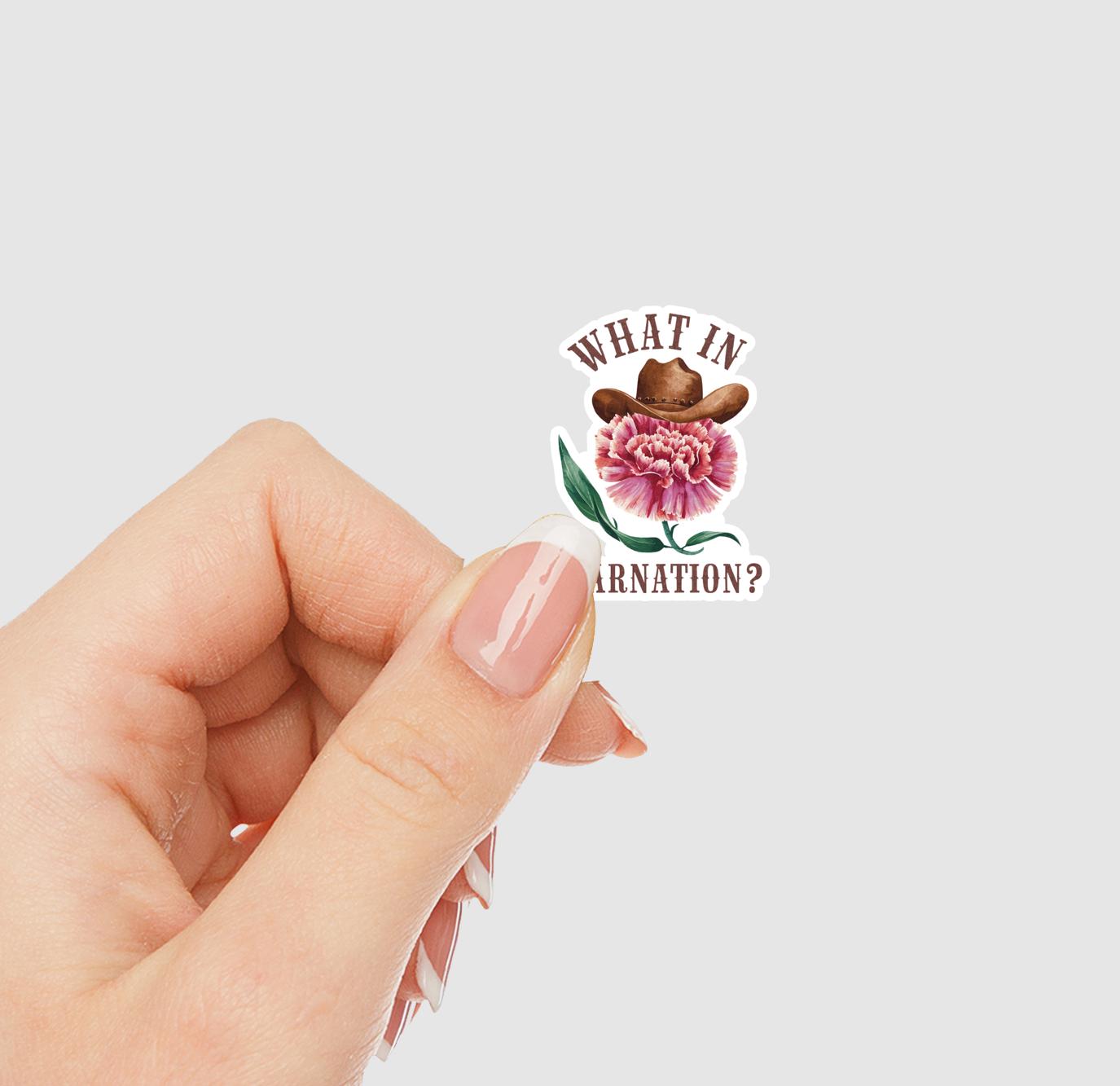 Our What In Carnation Vinyl Sticker is waterproof, UV-resistant, durable, and perfect for personalizing your laptops, water bottles, phone cases, tablets, Kindles, planners, notebooks, journals, tumblers, mugs, mirrors, cars, motorcycles, and more!